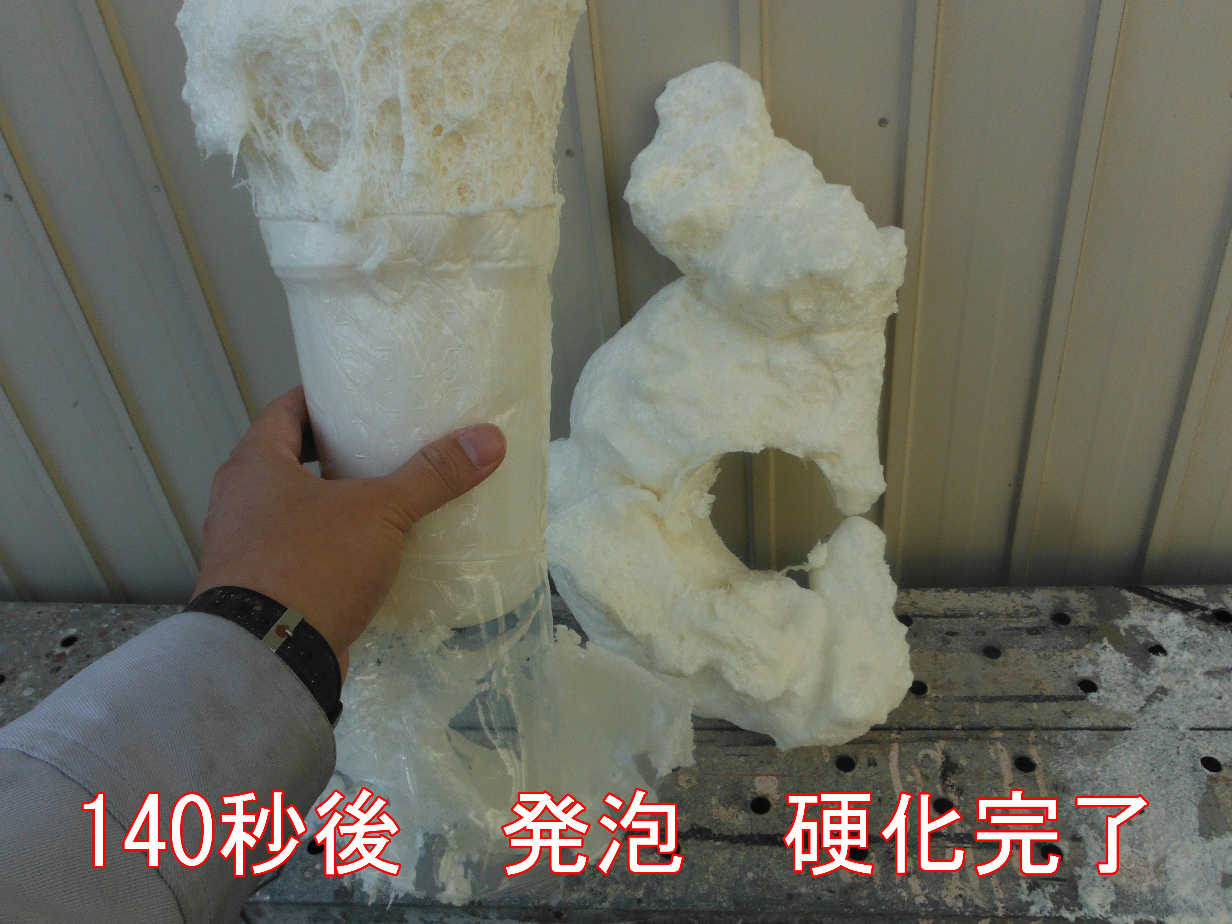 高圧注入と発泡の力で漏水箇所に樹脂を注入します。水が流れ出ている状況でも止水します。