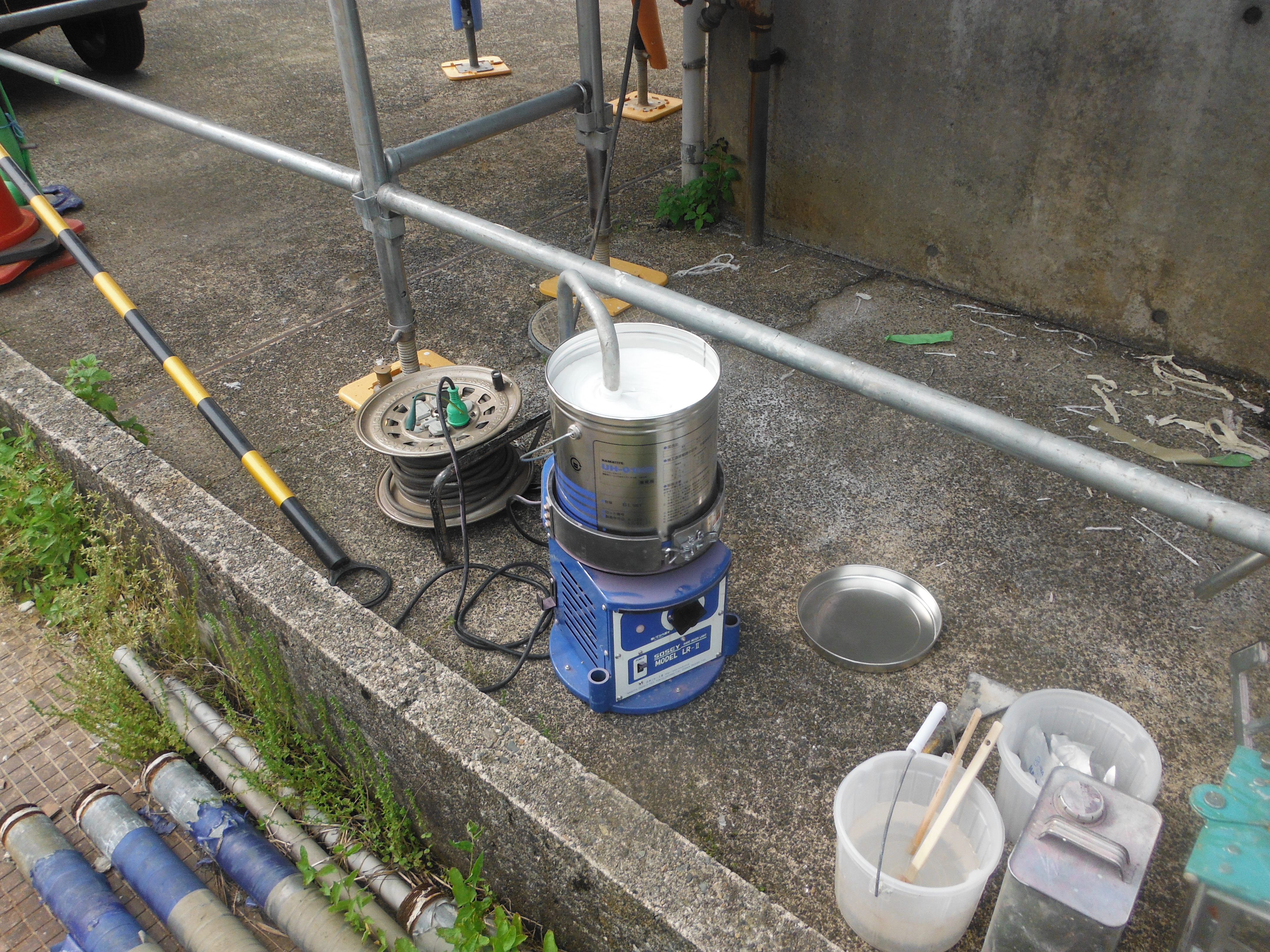 コンクリート打設の施工不良箇所に最大700㎏/㎝2の圧力で加水反応型樹脂を注入します。
