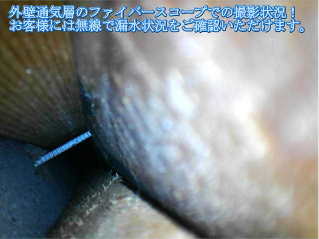 ファイバースコープでの外壁通気層の漏水確認状況。