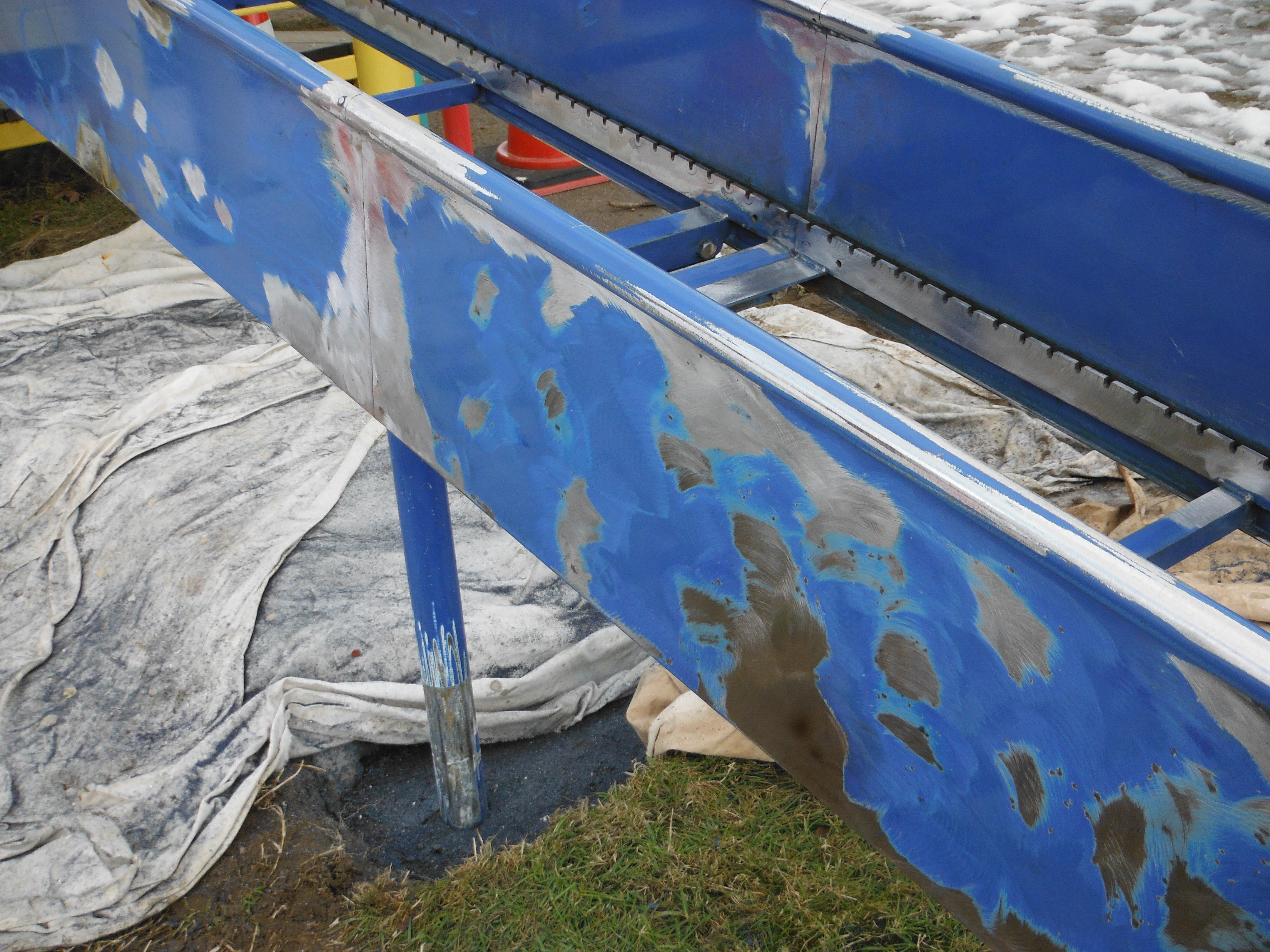 - 補修塗りの錆止の色と違う色の塗料を使用して塗り残しを無くします。