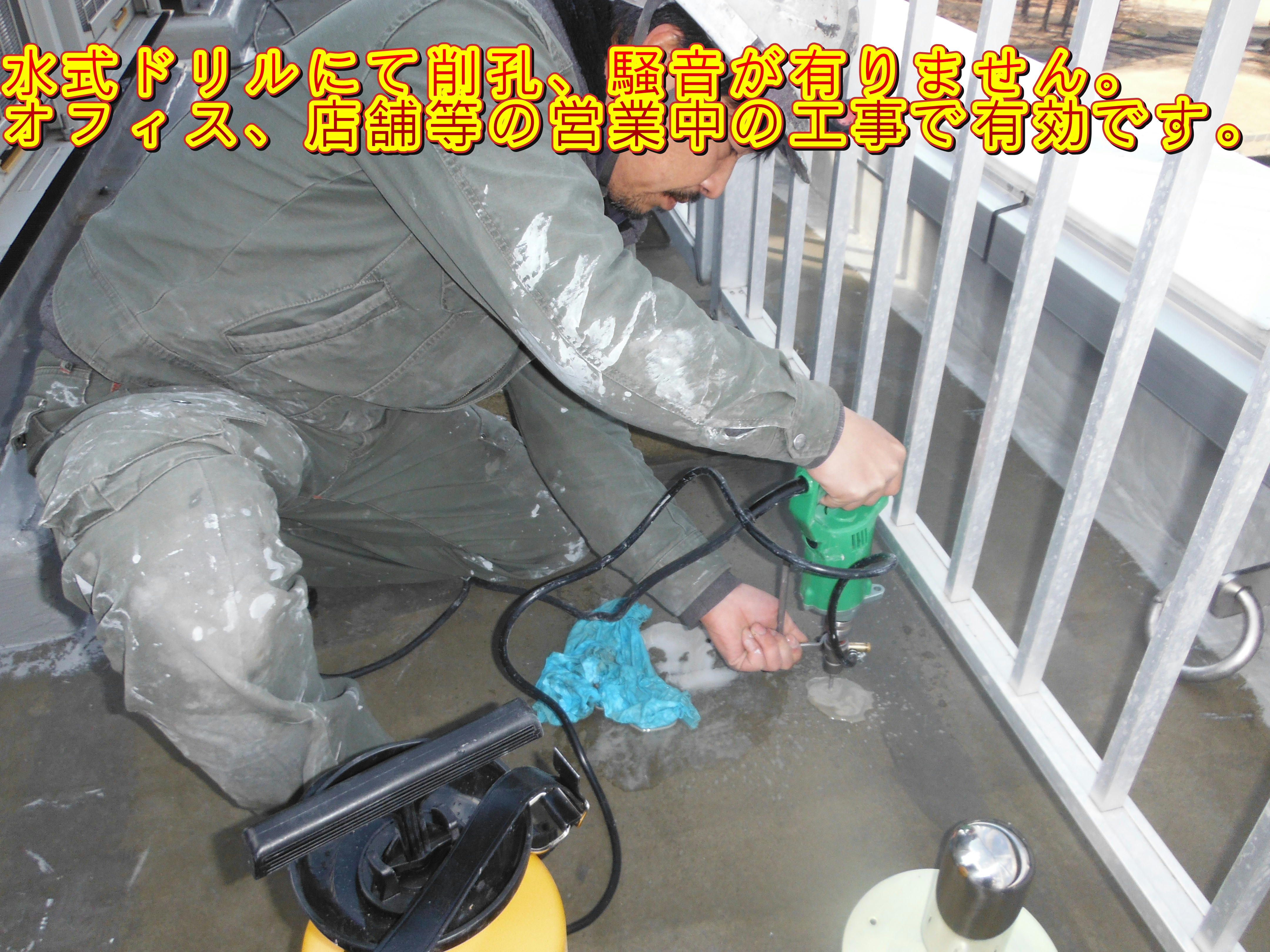 水式ドリルでの削孔 躯体を伝う振動音、打撃音がでません。