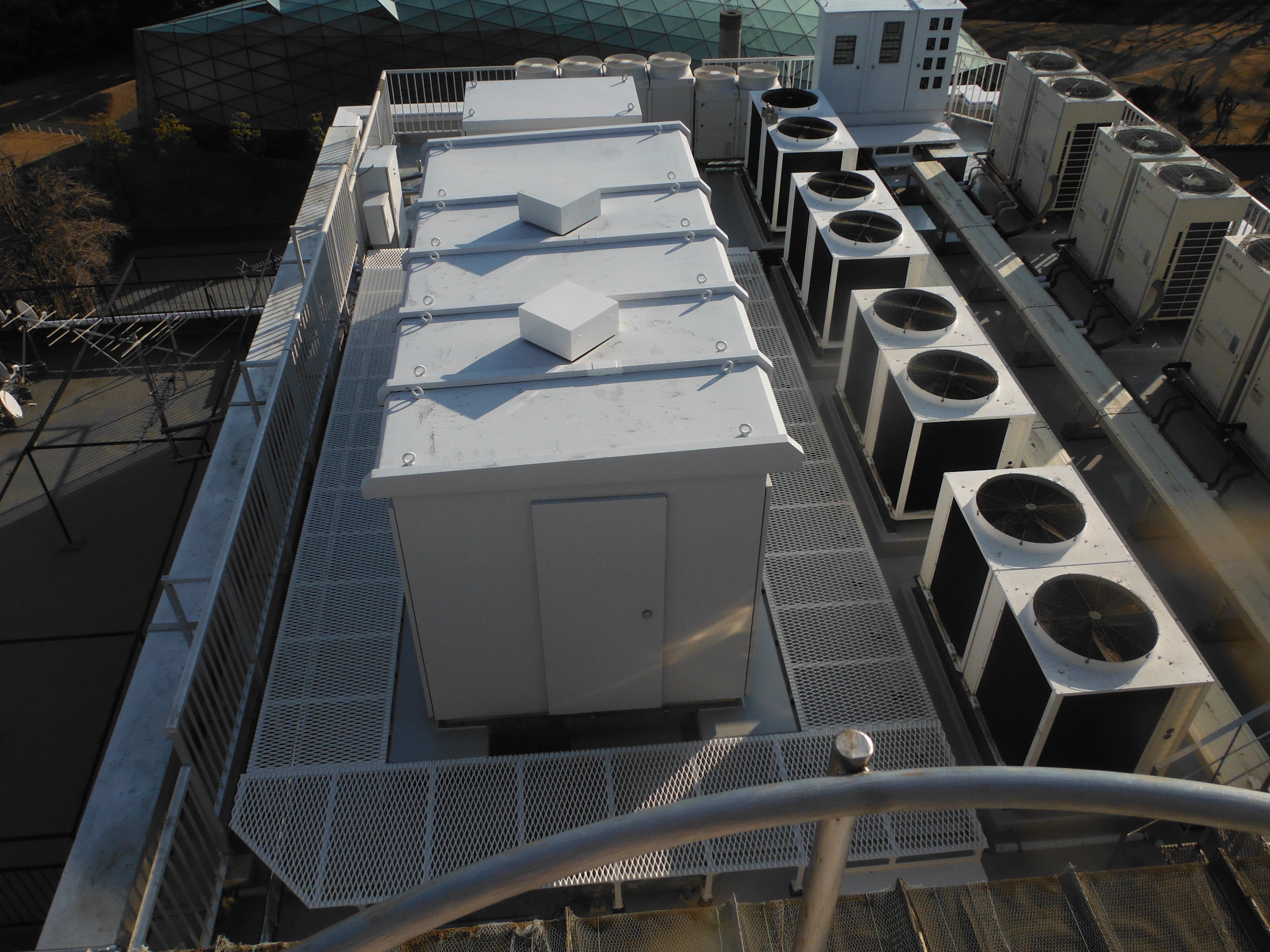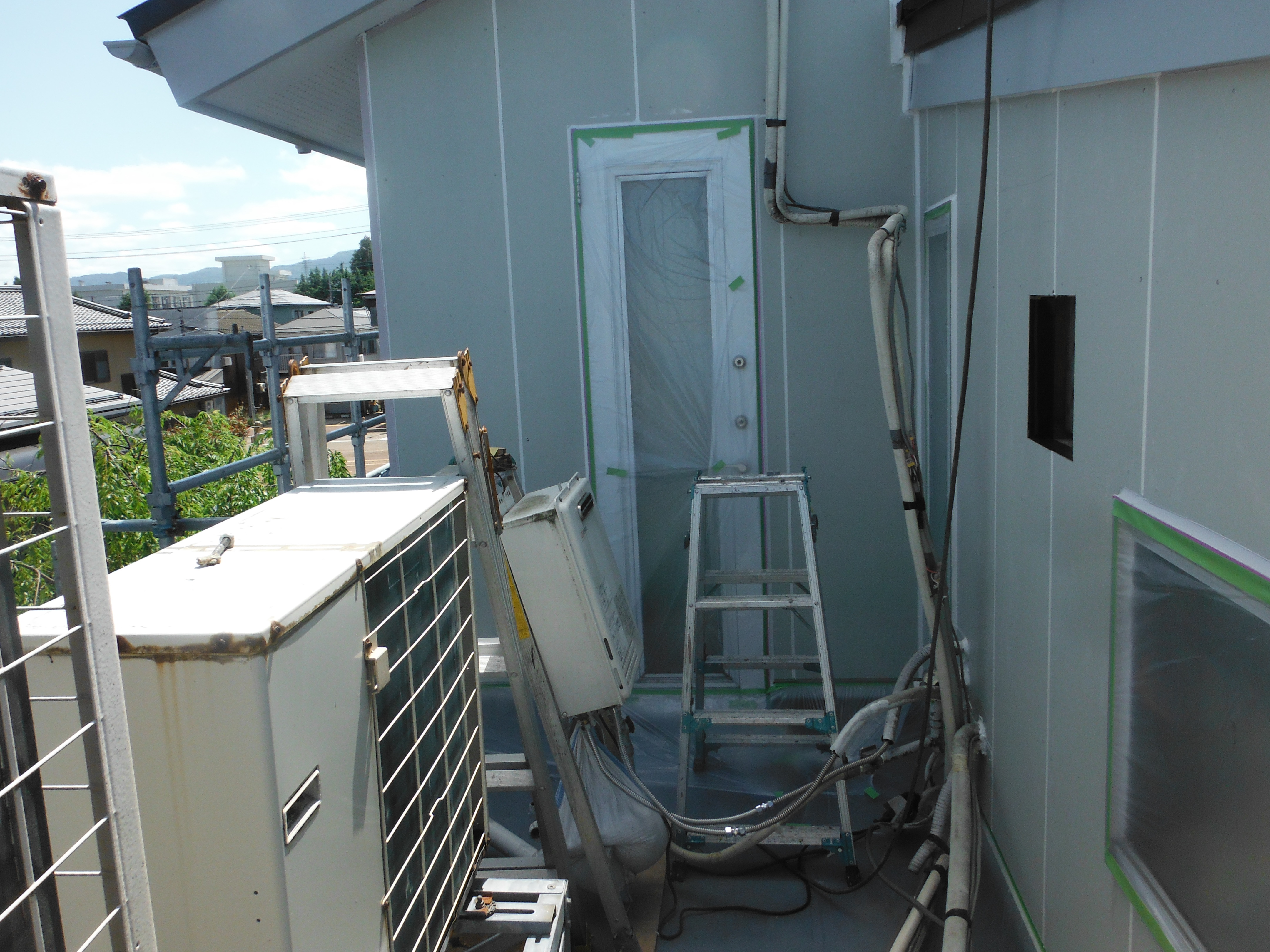 外壁張替え工事状況 (工事期間中は空調、給湯設備共に使用できます。)