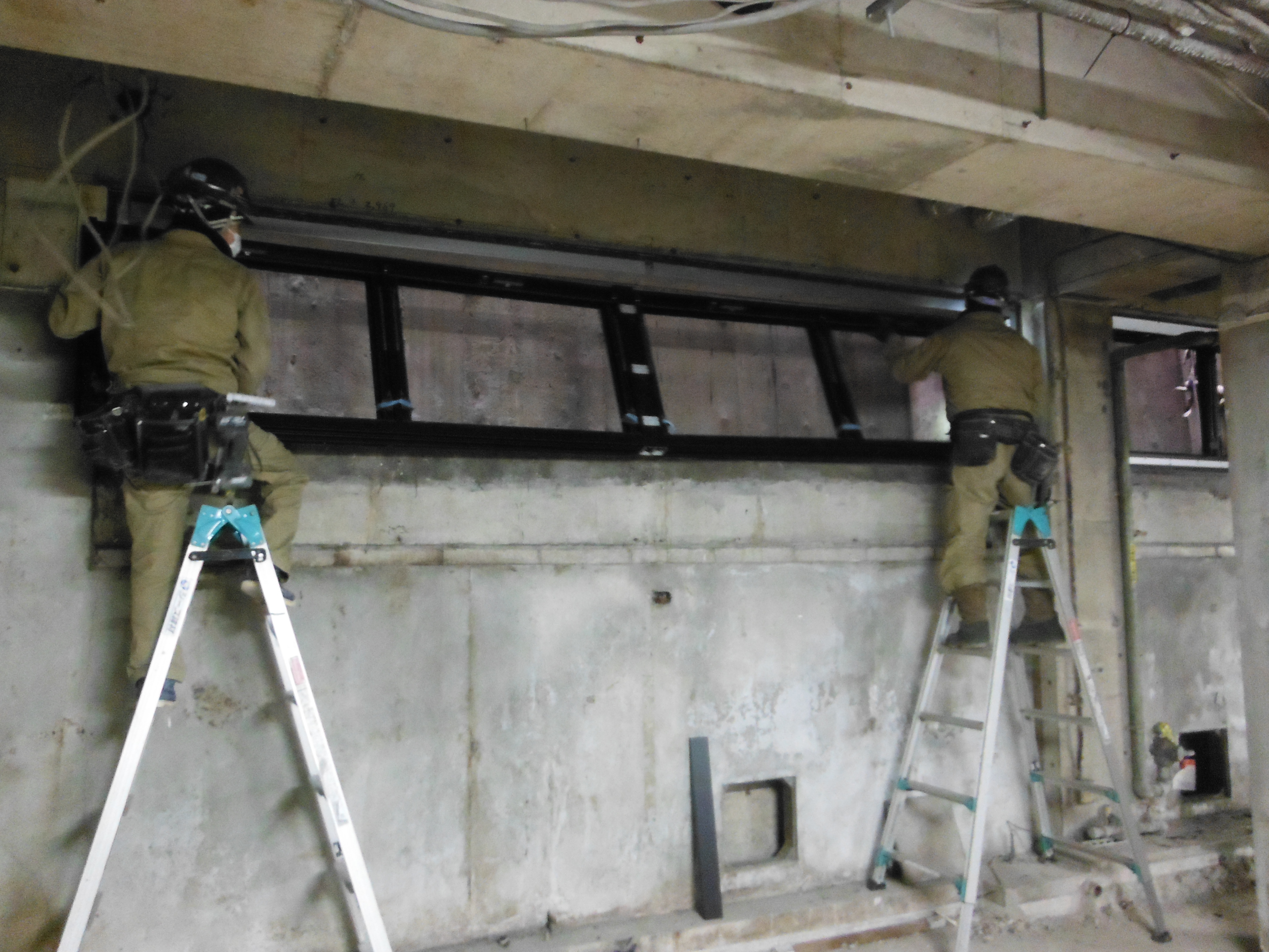 排煙窓改修工事 カバー工法 (建築基準法による排煙面積は変わりません。既存サッシ枠を使用して施工します。サッシ全般に適用できます。